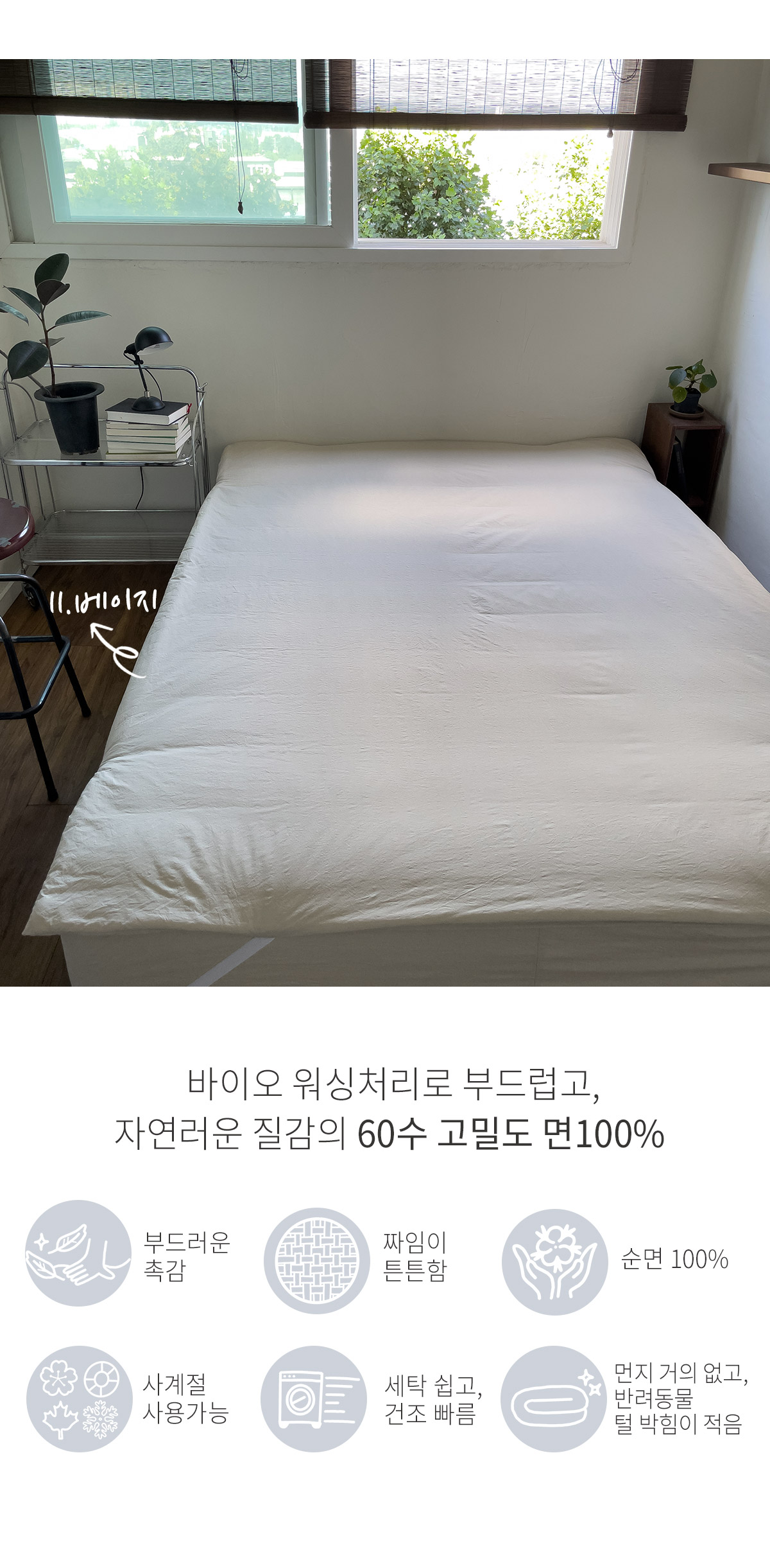 -양면 사용 가능(앞, 뒤 60수 고밀도 순면100%)