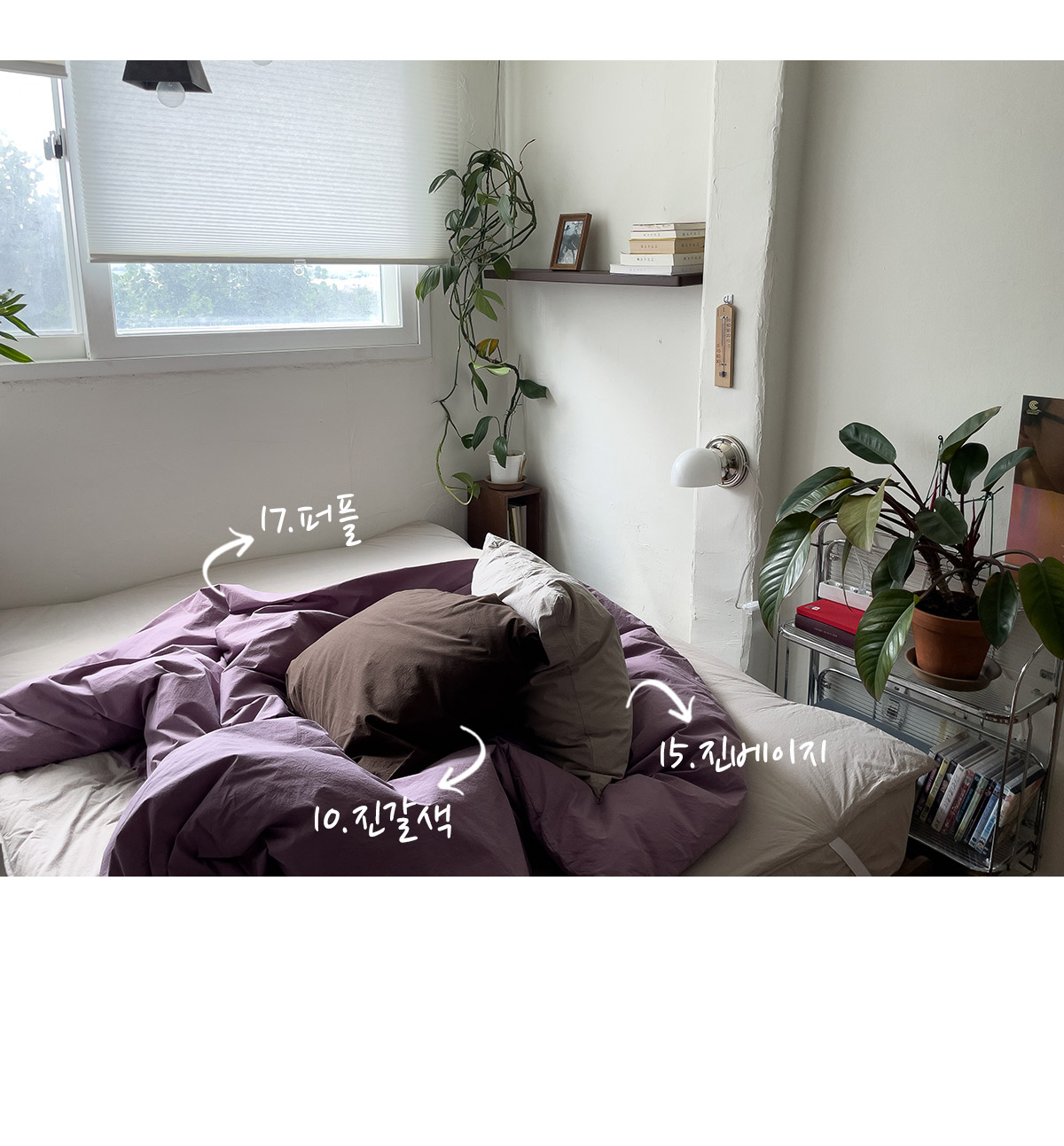 *색상:처음 딱 받아서 제품만 봤을 때는 사진보다 색감이 진하다고 생각하실 것 같아요. 촬영하다 보니 자연광에서는 본래 색상보다 훨씬 연해 보이더라구요.